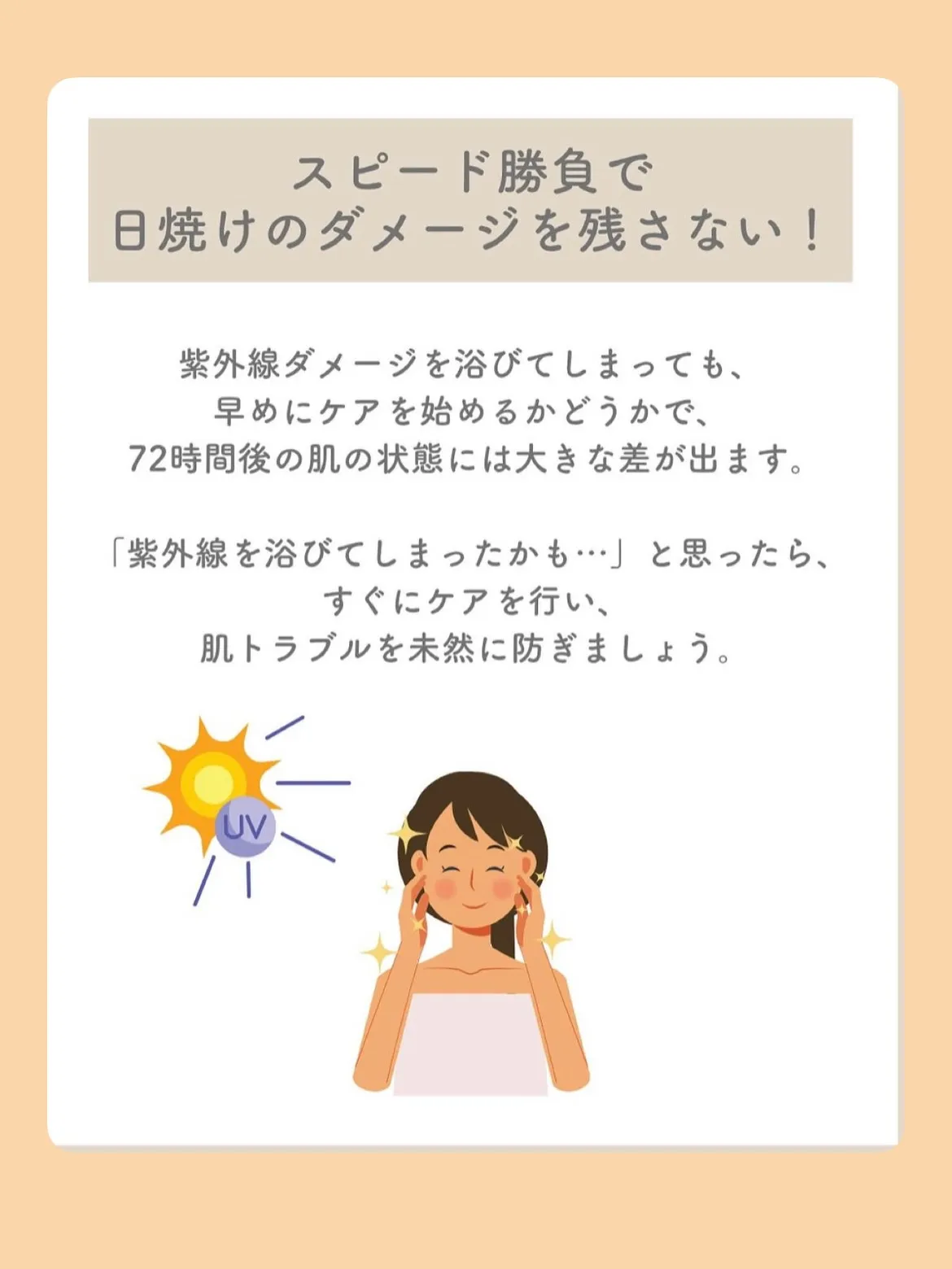 日焼け後の肌は、適切なケアを行うことで回復を促進できます。まずは冷却が重要です。冷たいシャワーや冷却パックを使用して肌を冷やし、炎症を抑えます。その後、保湿ケアを徹底し、肌の水分を補給します。アロエベラやカモミールエキスを含むジェルやクリームを使うと、肌の鎮静効果があります。また、ビタミンCやEを含む美容液を使用し、抗酸化作用で紫外線ダメージを軽減します。さらに、日焼け後の数日は紫外線を避け、肌を休ませることが大切です。これにより、肌が自然な状態に戻るのをサポートできます。リカバリー期間中は、肌を刺激しないように優しくケアを行い、健康な肌を取り戻しましょう。